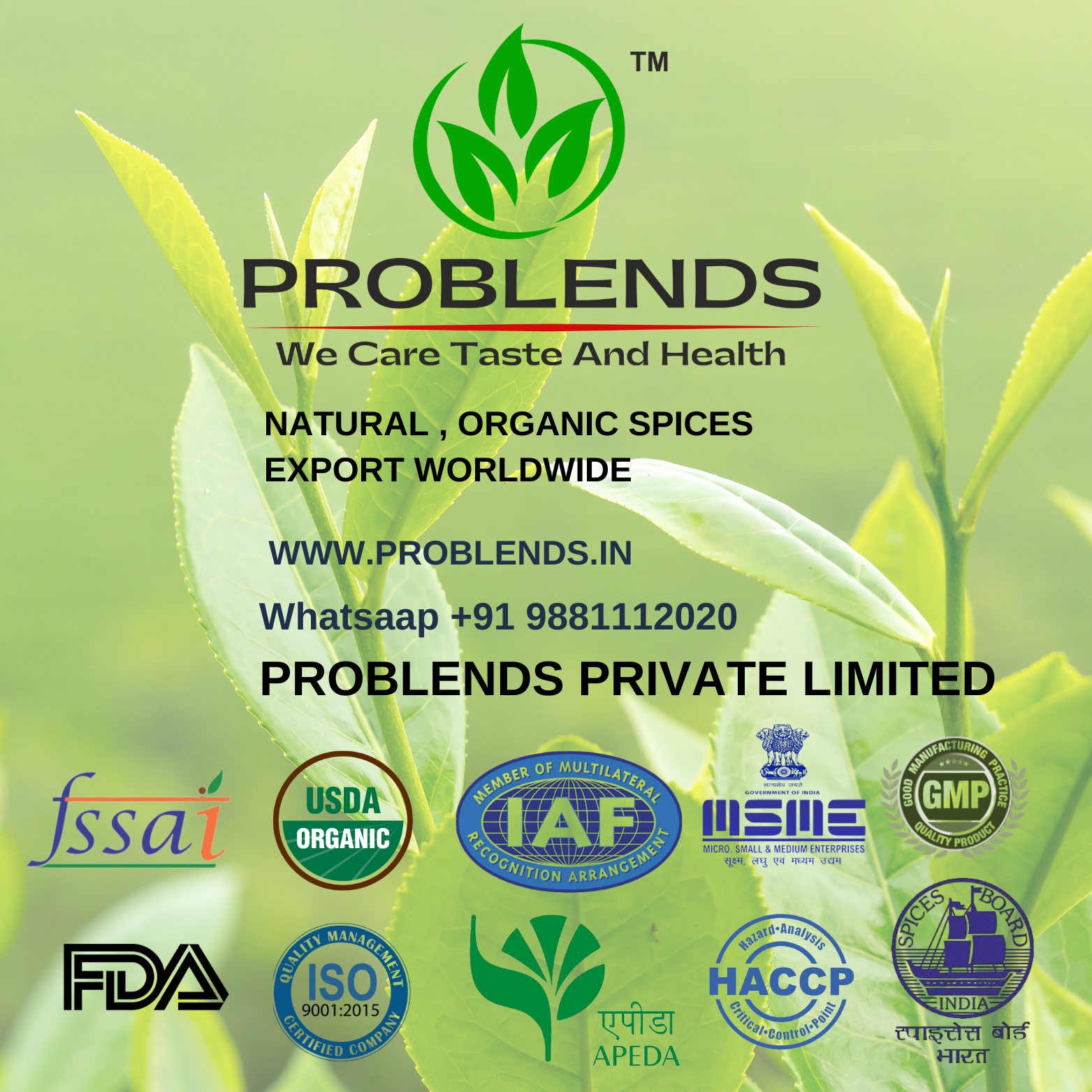 welcome to problends private limited , an iso 9001:2015 ,gmp,usda organic,fad,haccp,fssai,iaf,apeda,spice board of india,iec,msme,certified company , great deals to Your Destination for